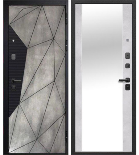 Входная дверь «Геометрия» Зеркало Бетон снежный